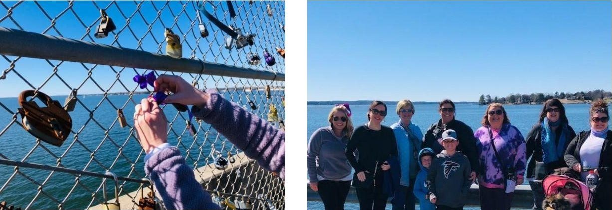Walk the Dam for Fitness included tying purple ribbons on the Lake Murray Dam fence while also recognizing Alexis' prior work as a personal fitness trainer.